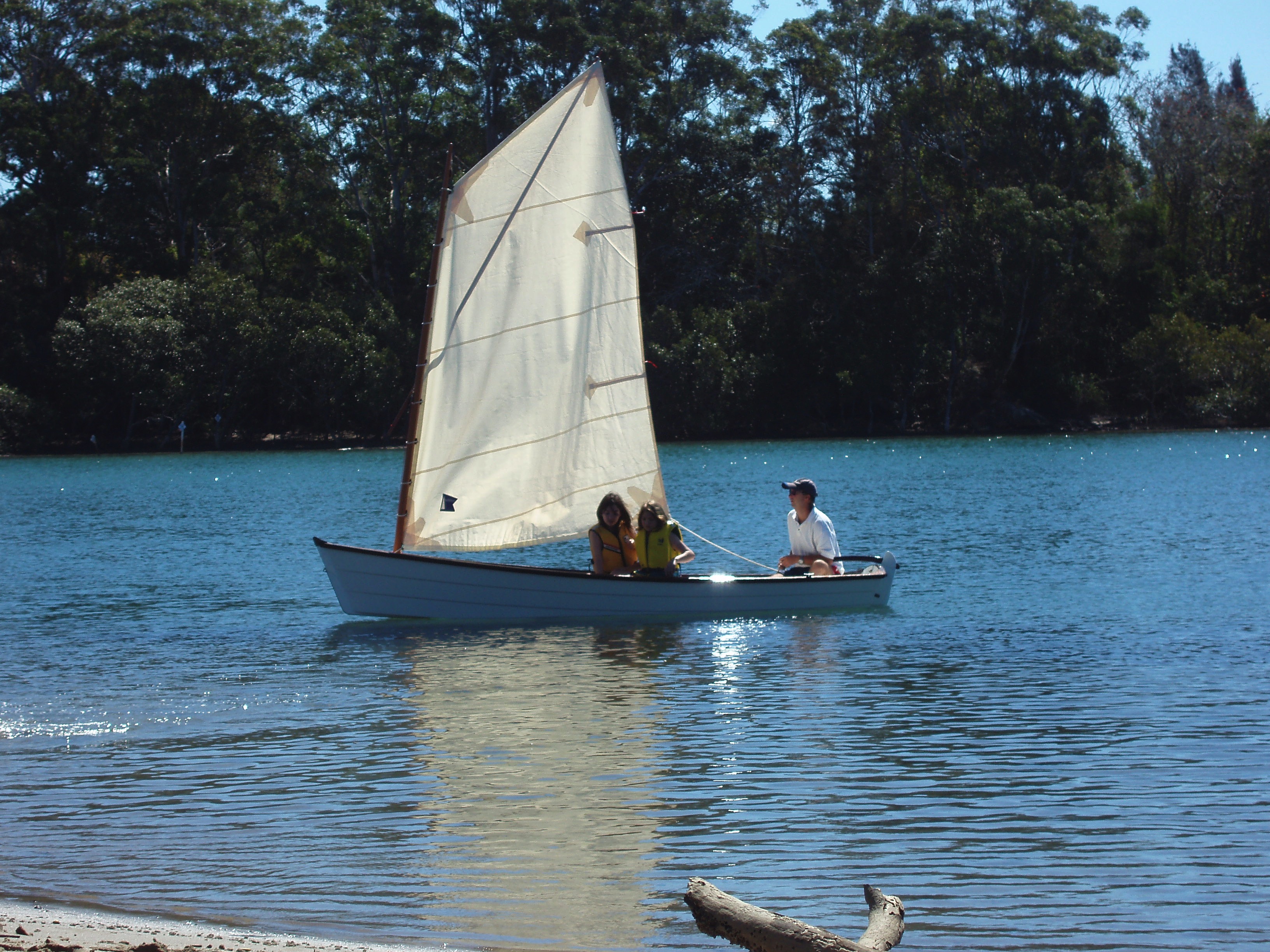 Cute tradional style dinghy that sails and rows, or attach a small 3h outboard to the transom for a cruise up the estuary.